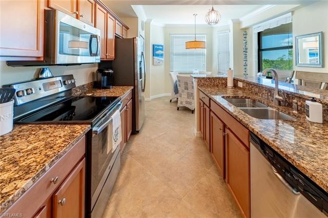 Step into effortless resort-style living in this beautifully appointed Bellini-model, 2-bedroom, 2-bath third-floor residence, nestled within the desirable Giaveno neighborhood of Treviso Bay. Offered turnkey, this home is perfectly suited for full-time living, a seasonal escape, or a refined investment opportunity with successful rental history. Bathed in natural light, the open-concept design features elegant tray ceilings, tile flooring throughout the main living areas, and a thoughtfully designed kitchen with granite countertops, abundant cabinetry, pantry, and casual dining space, ideal for both everyday comfort and entertaining. Step onto the screened lanai and unwind while enjoying South-facing preserve views, where peaceful privacy and breathtaking sunsets set the tone for relaxed living. The serene primary suite offers walk-in closets and a private ensuite bath, while a comfortable guest bedroom and full bath provide a welcoming retreat for family and friends. A deeded TPC Treviso Bay Golf Membership conveys with the residence, offering privileged access to the championship course and an exceptional lifestyle experience on one of Naples most desirable courses. Additional conveniences include assigned covered parking and a deeded storage closet. Residents of Treviso Bay enjoy an unparalleled array of amenities from championship golf and resort-style pools to fitness, spa services, tennis, pickleball, fine dining, and a vibrant social calendar, all just moments from downtown Naples 5th Avenue and Marco Island.